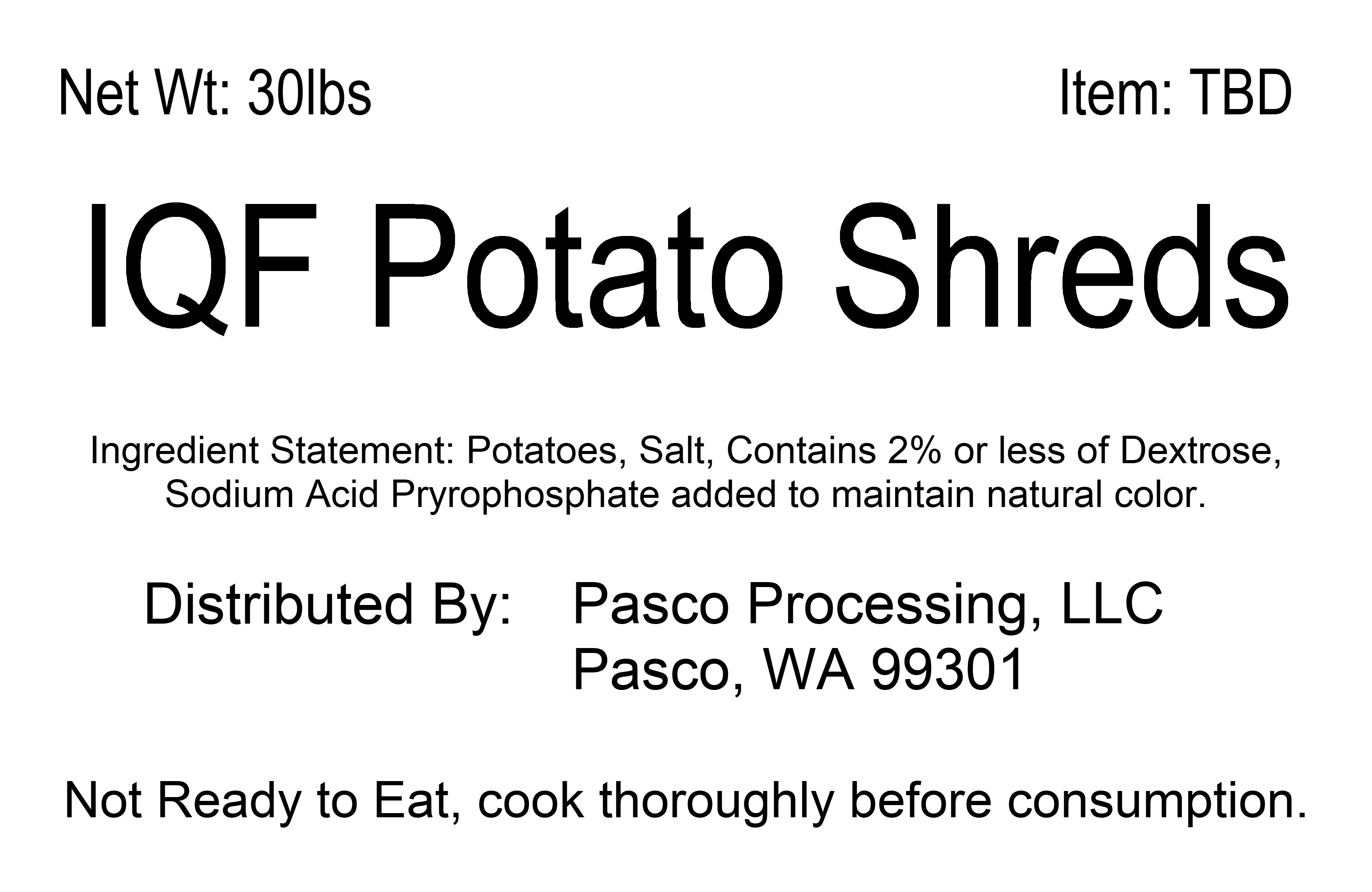 Subject: IQF Shredded Potatoes