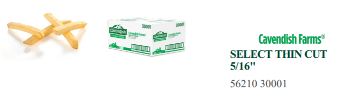 Code # 46334 – Cavendish S/C 5/16” Fry packed 6/5lb. Item # 30001