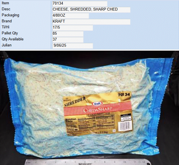 Subject: 70134 - CHEESE, SHREDDED, SHARP CHED