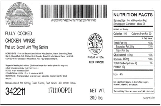 Product: Fully cooked chicken wings 9-11 count