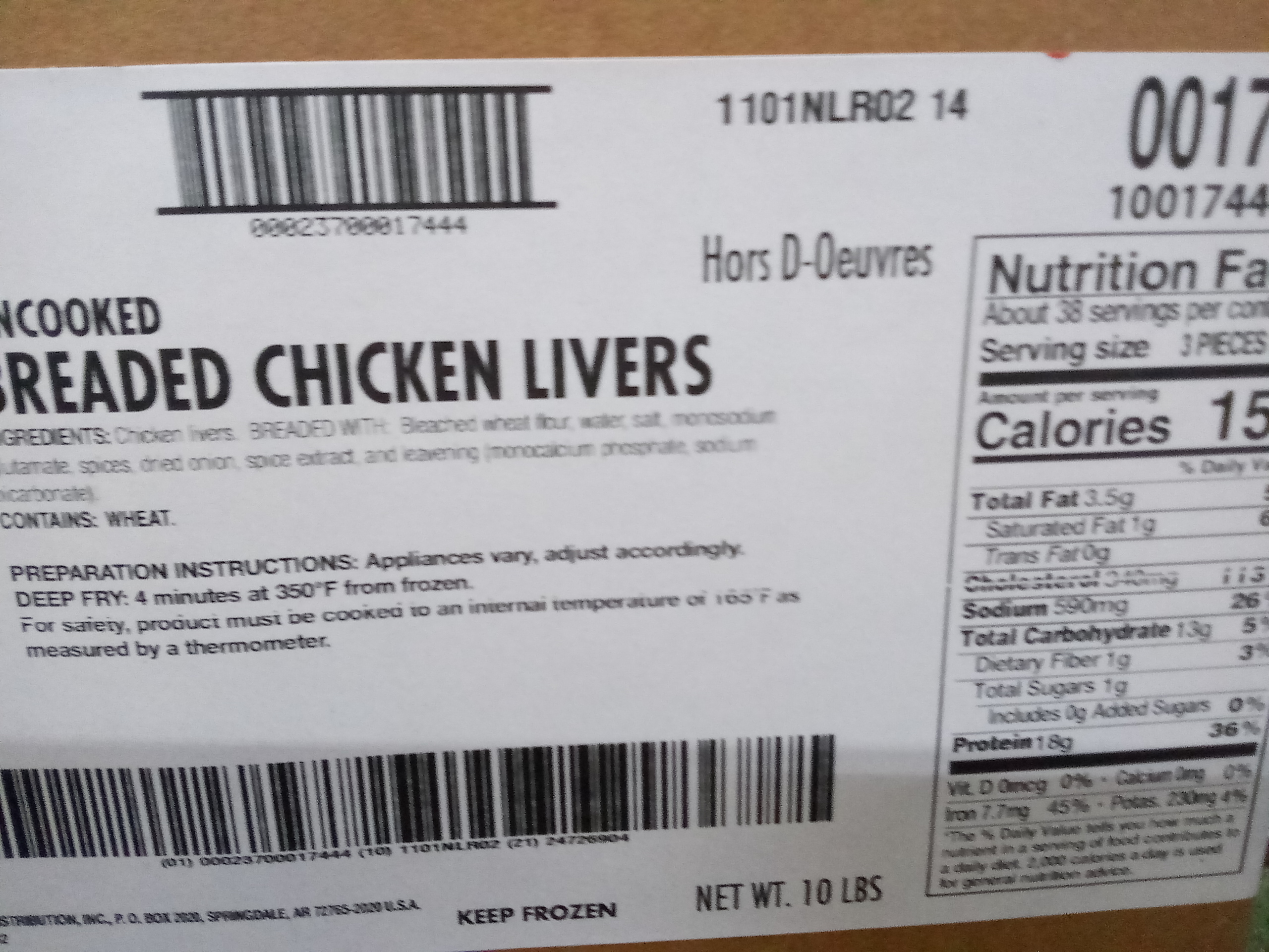 Subject: FW: TY 1744-0928 KF Breaded chicken Livers