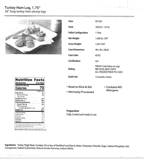 #006441 TURKEY LOGS OVEN ROASTED WHITE